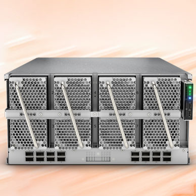 ● 每个 4 插槽机箱可选配 6、12 或 16 个 PCIe 5.0 插槽。全系列 HBA、HCA、光纤通道卡以及 L4/L40S 和 H100 NVL GPU。